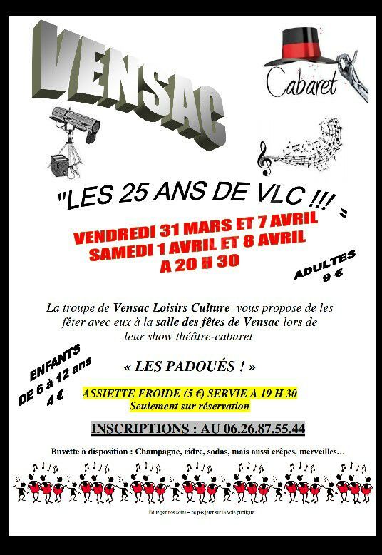 La troupe de Vensac Loisirs Culture vous propose de les fêter lors de leur show théâtre cabaret : "Les Padoués !"