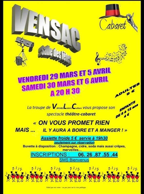 La troupe de VLC vous propose de passer une excellente soirée en leur compagnie pour un nouveau spectacle : "On ne vous promet rien mais ... il y aura à boire et à manger !"