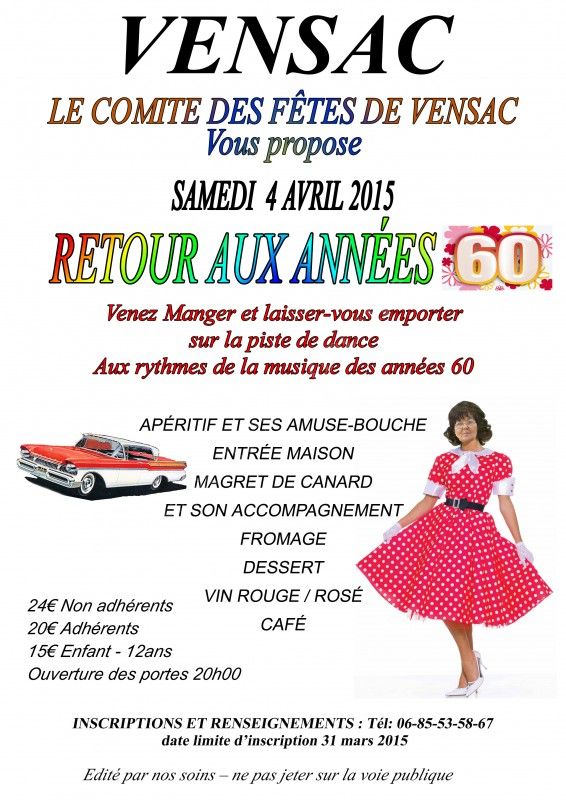 Le Comité des Fêtes de Vensac vous propose une Soirée Années 60 !