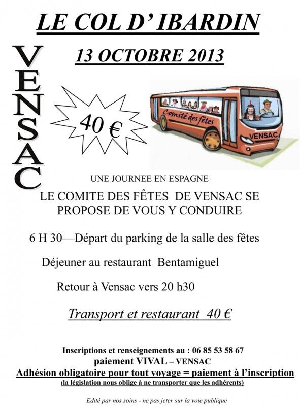 Le Comité des Fêtes de Vensac vous propose une journée en Espagne au Col d'Ibardin !