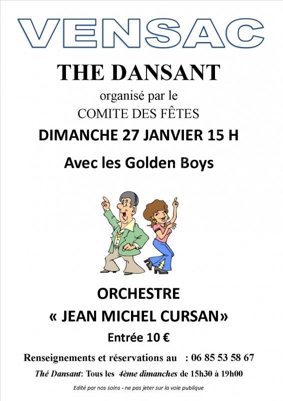 Le comité des fêtes de Vensac vous invite à son traditionnel thé-dansant animé par l'orchestre de Jean-Michel Cursan et avec les Golden Boys.