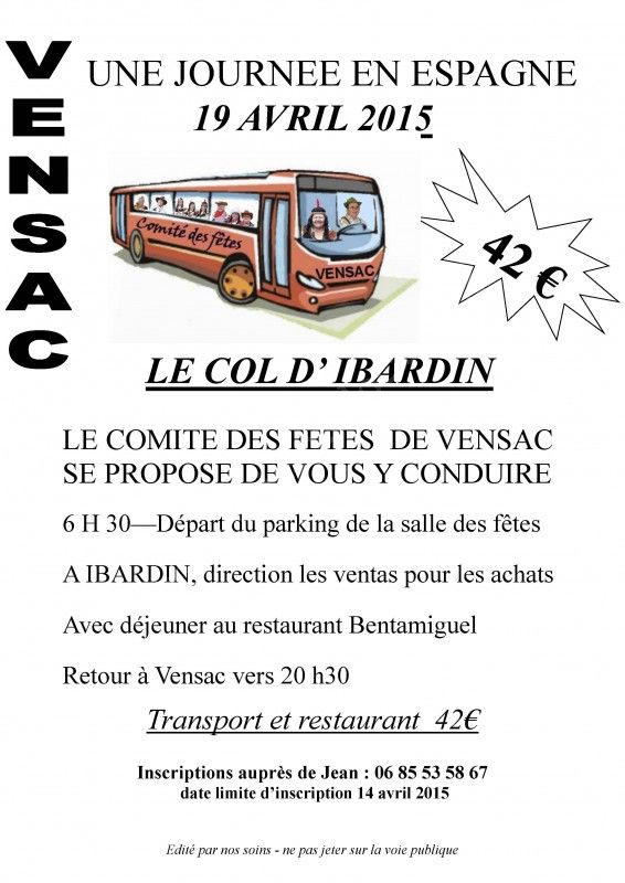 Le Comité des Fêtes de Vensac vous propose de vous conduire au Col d'Ibardin (Espagne).