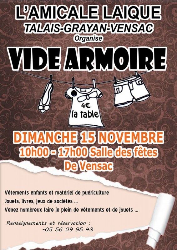 L'Amicale Laïque Talais - Grayan - Vensac organise un vide-armoire.