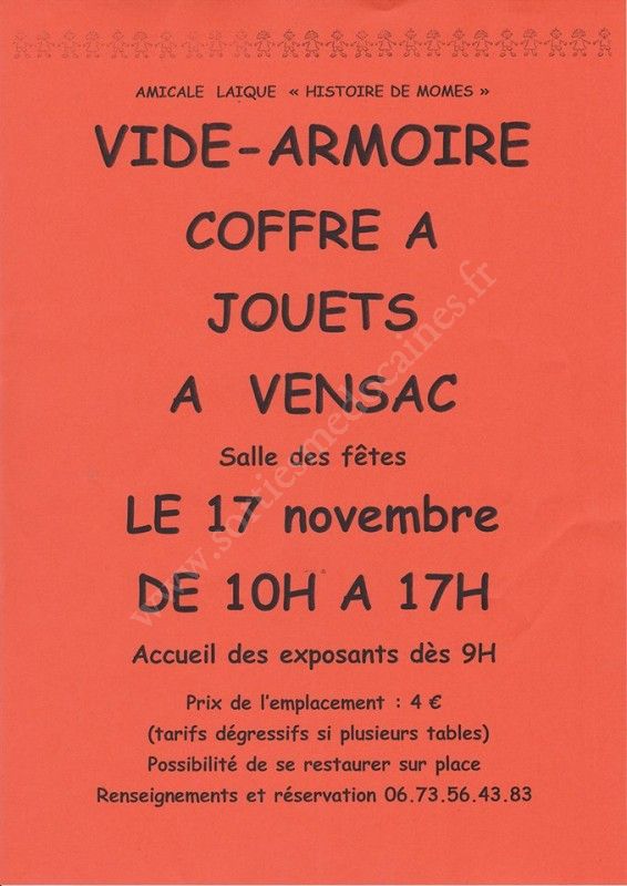 L'Amicale Laïque "Histoire de Mômes", l'amicale des écoles de Grayan, Talais et Vensac organise un vide-armoire et coffre à jouets.