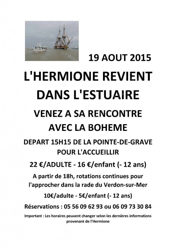 L'HERMIONE REVIENT DANS L'ESTUAIRE VENEZ A SA RENCONTRE AVEC LA BOHEME !