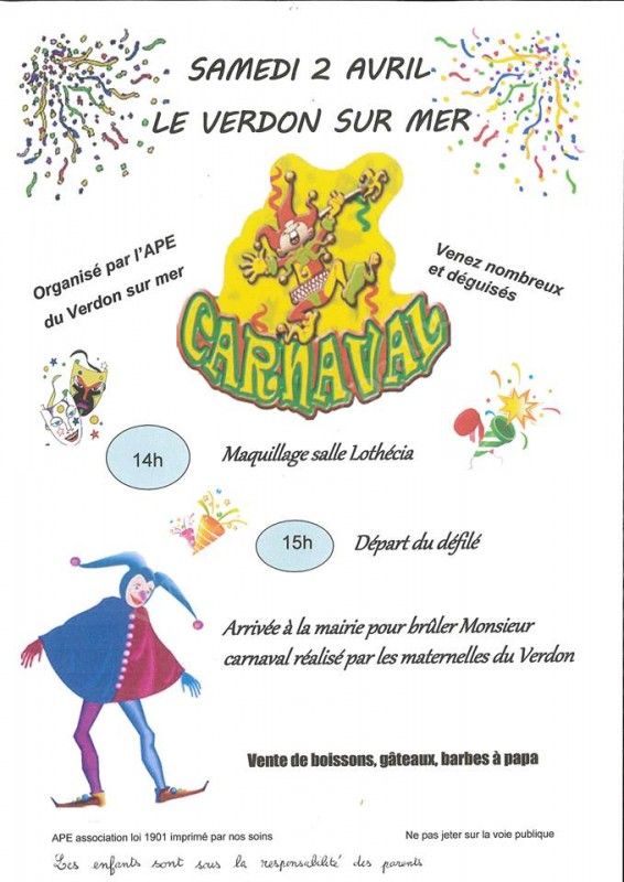 - Puis départ à 15H00 pour le défilé avec arrivée à la Mairie pour la crémation de Mr Carnaval.