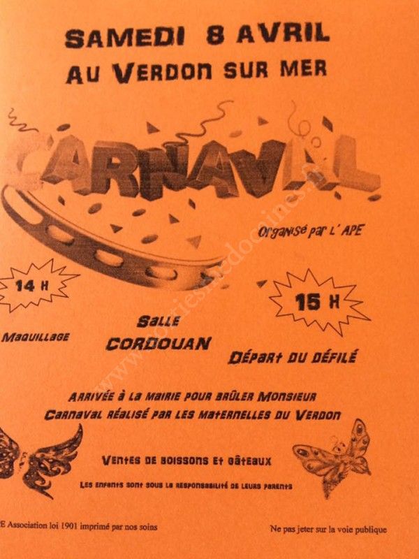 Arrivée à la mairie pour brûler Monsieur Carnaval réalisé par les maternelles du Verdon.