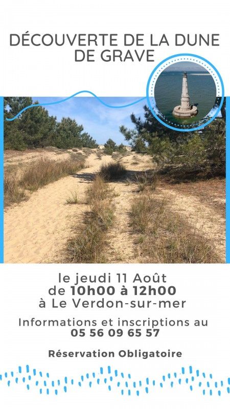 La fin des terres médocaines abrite un milieu naturel très riche et très varié. A deux pas des plages océanes fréquentées, le CPIE Médoc propose de prendre le temps de savourer autrement ce littoral. Accompagné d’un guide, vous partirez à la découverte de la dune de Grave qui associe une grande richesse écologique et des vues splendides sur Cordouan.