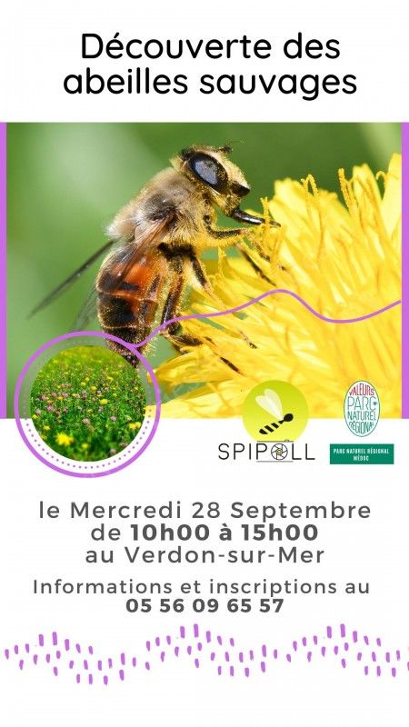 Dans le cadre de notre partenariat avec le PNR Médoc, nous proposons de venir découvrir ces insectes. Ainsi, Amélie DELERUE, chargée de mission LIFE abeille sauvage viendra vous présenter l'étude qu'elle mène sur ce sujet. Elle sera accompagnée par un membre de l'OPIE (office pour les insectes et leur environnement) qui vous formera à la reconnaissance des insectes pollinisateurs grâce au programme de sciences participatives SPIPOLL.