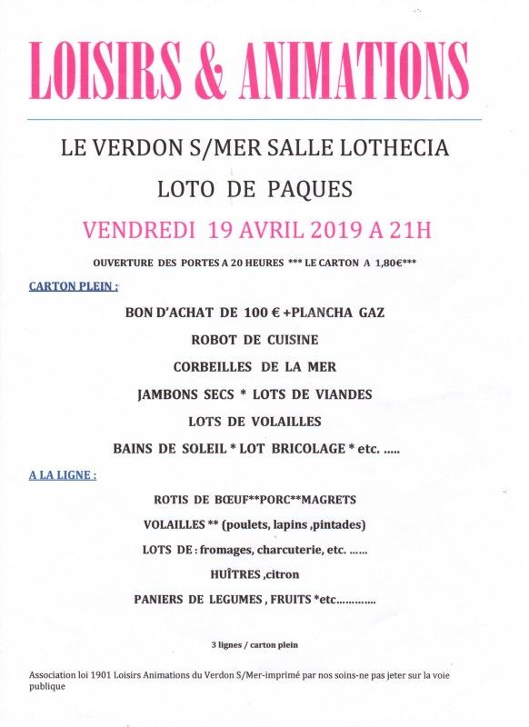 Loto de Pâques proposé par Loisirs & Animations