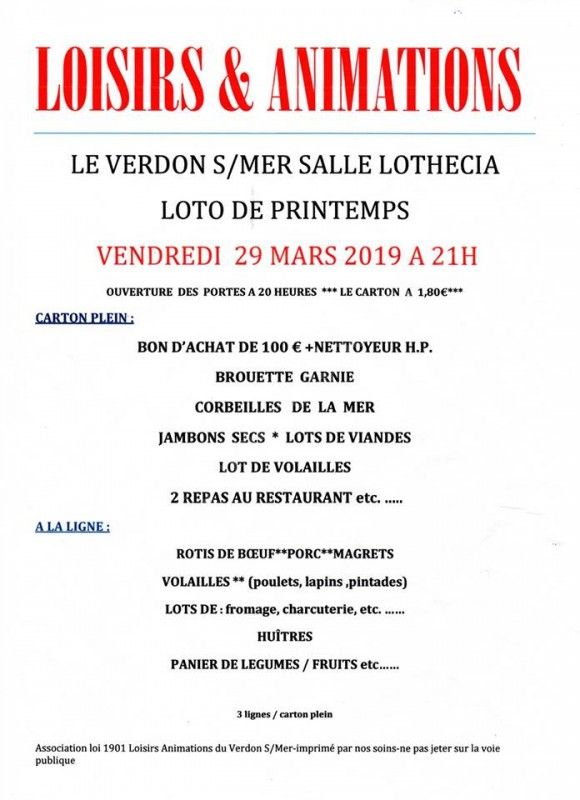 Loto de printemps de Loisirs & Animations.