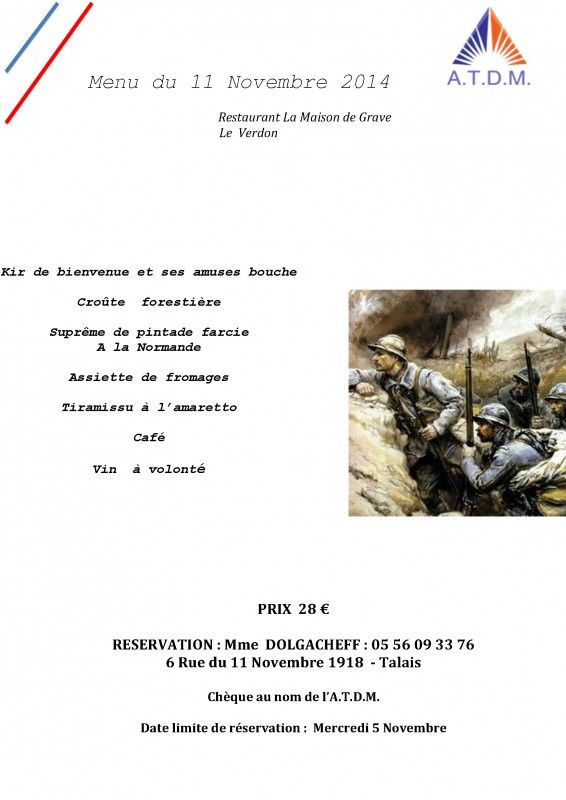 REPAS 11 NOVEMBRE ORGANISE PAR L AMICALE DU DEVOIR DE MEMOIRE.