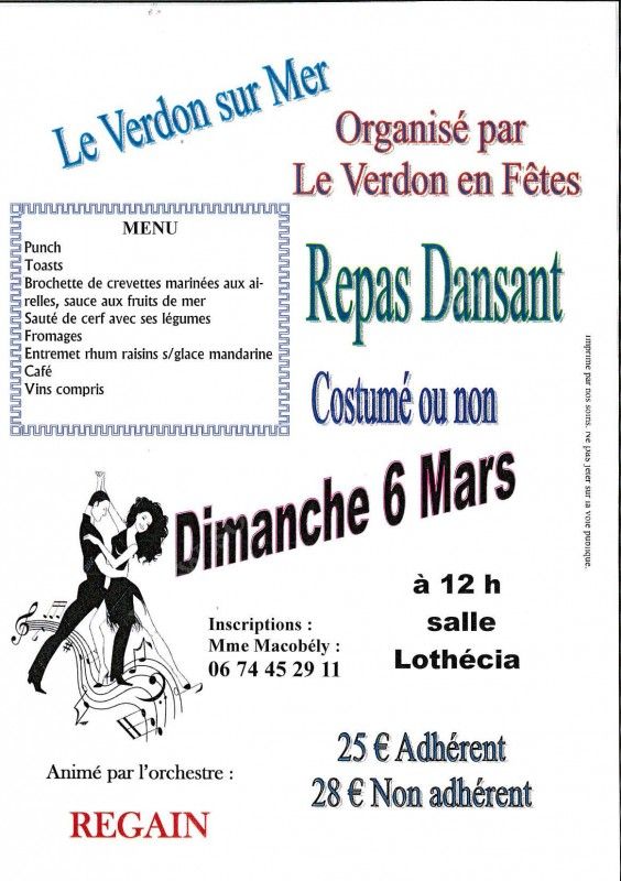 Repas dansant organisé par Le Verdon en Fête et animé par l'orchestre "Regain".