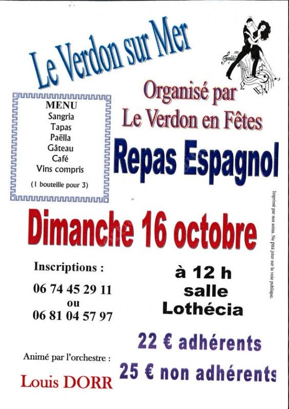 Repas Espagnol organisé par Le Verdon en Fêtes.