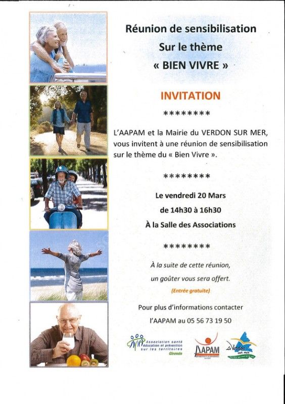Réunion de Sensibilisation sur le Thème du "Bien Vivre" proposée par l'AAPAM et la Mairie du Verdon-sur-Mer.