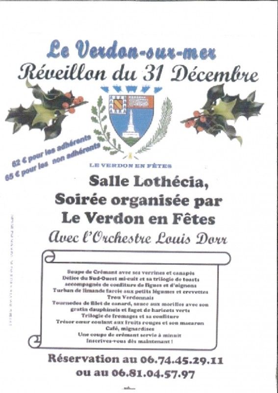 Réveillon de la ST Sylvestre organisé par Le Verdon en Fêtes avec l'orchestre Louis Dorr