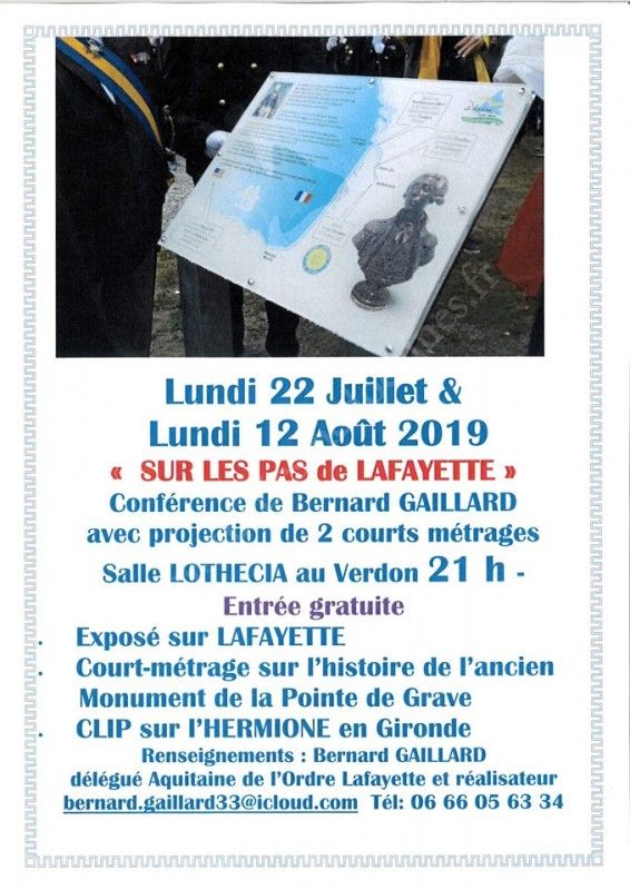 "Sur les pas de Lafayette" conférence de Bernard Gaillard avec projection de 2 courts métrages.