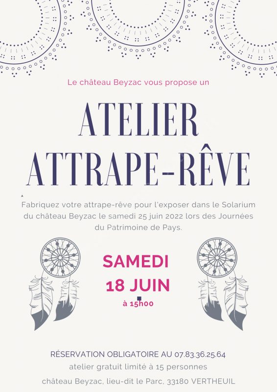 Atelier "Attrape-Rêve" proposé par le Château Beyzac.