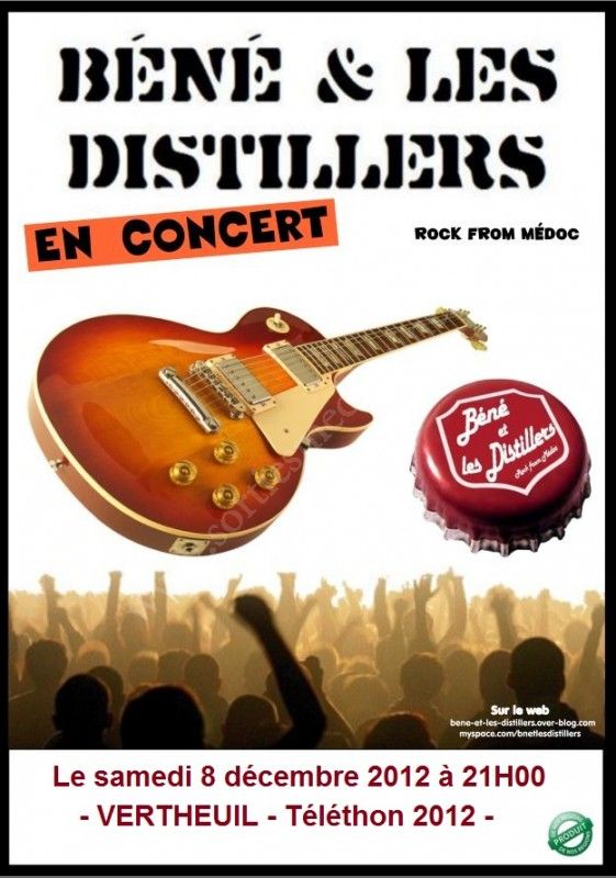 A l'occasion du Téléthon 2012, le groupe " Béné et les Distillers " Rock from Médoc, se produira à la salle des Fêtes de la localité de VERTHEUIL.
