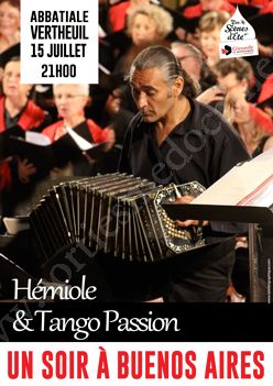 Œuvres de Villa-Lobos, Piazzolla, et Misa Tango de Palmeri, interprétées par les 70 choristes d’"Hémiole", direction Michèle Lhopiteau et l’ensemble instrumental "Tango passion", direction France Desneulins