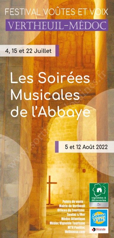 Les Soirées Musicales de l'Abbaye s'inscrivent dans des Scènes d'été en Gironde ; cette année, comme par le passé, notre choix s'est voulu éclectique et orienté vers une grande qualité d'artistes et de musiques.