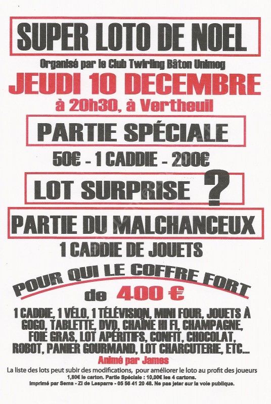 La liste des lots peut subir des modifications pour améliorer le loto au profit des joueurs.