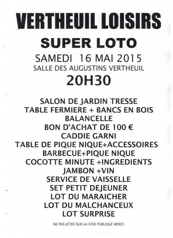 Loto organisé par Vertheuil Loisirs.