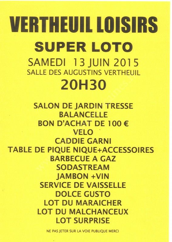 Loto organisé par Vertheuil Loisirs.