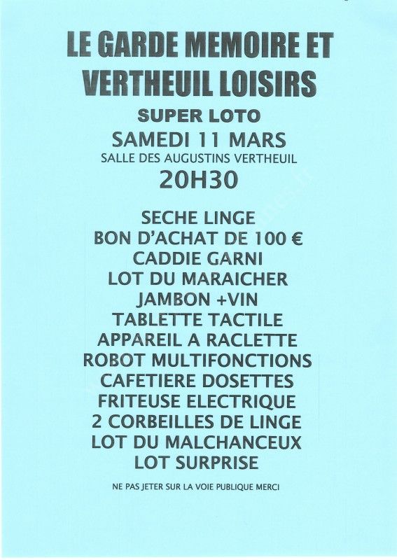 Loto organisé par Vertheuil Loisirs le samedi 11 mars 2017.