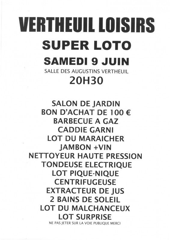 Loto organisé par Vertheuil Loisirs le samedi 9 juin 2018.