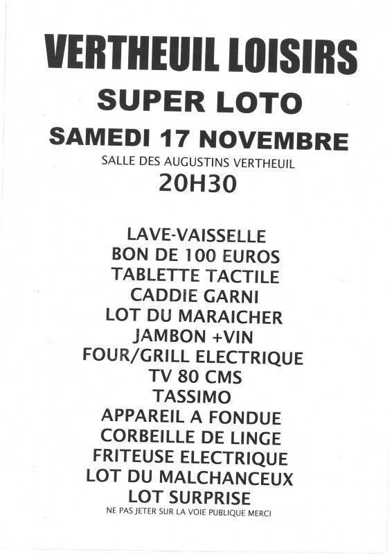 Loto organisé par Vertheuil Loisirs le samedi 17 novembre 2018.
