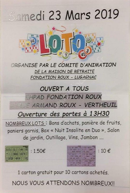Loto organisé par le Comité d'Animation de la Maison de Retraite Fondation Roux - Lagagnac.