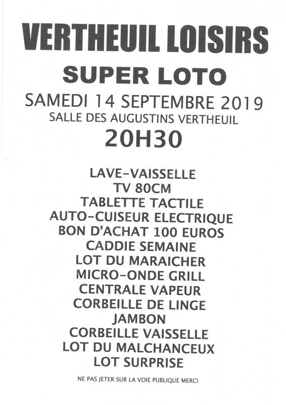 Loto organisé par Vertheuil Loisirs le samedi 14 septembre 2019.