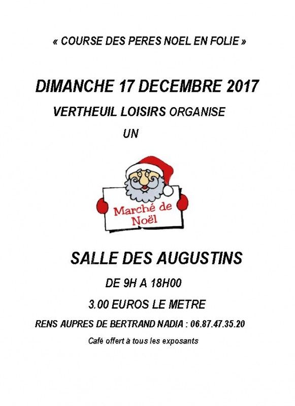 Dans le cadre de leur 7ème édition de la "Course des Pères Noël en Folie", Vertheuil Loisirs organise un Marché de Noël.