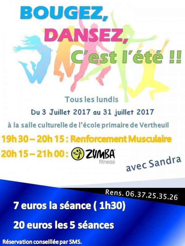Renforcement Musculaire & Zumba avec Sandra tous les lundis de juillet.