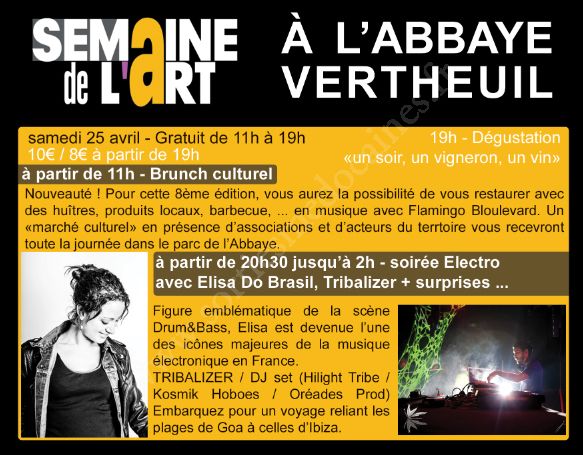 Puis, à partir de 19h, ce sera dégustation musicale, avec le Château Lesquireau Desse et Hackheart, un DJ de la région. Enfin, pour finir l’édition 2015 en beauté, une soirée électro débutera à 20h30 dans la salle des Augustins, avec Elisa Do Brasil, figure emblématique de la scène Drum&Bass. En plus de cette icône majeure de la musique électronique en France, nous retrouverons également Tribalizer, jeune DJ bordelais.