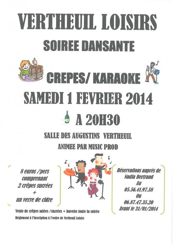 Inscription avant le 31 janvier par téléphone. Règlement à l'inscription à l'ordre de Vertheuil Loisirs.