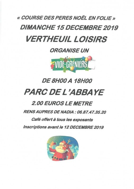 Dans le cadre de la "Course des Pères Noël en Folie", Vertheuil Loisirs organise un vide-greniers.