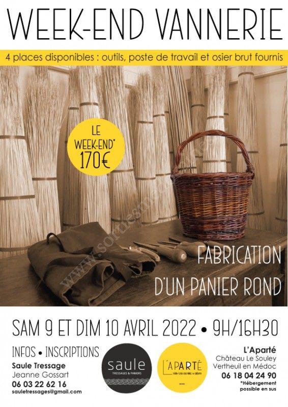 4 places disponibles : outils, poste de travail et osier brut fournis.